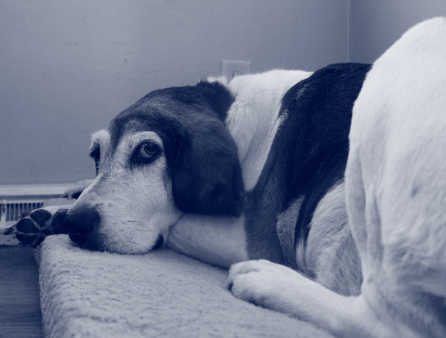 This is my dog, Andrew (which I show quite frequently here). The Man has been working on trying to figure his camera out and all the settings - and this was just one of those hap-hazard type photos he took with the grey scale setting. Usually my dog is asleep - so it was nice to see him with his big sad brown eyes actually open for once.